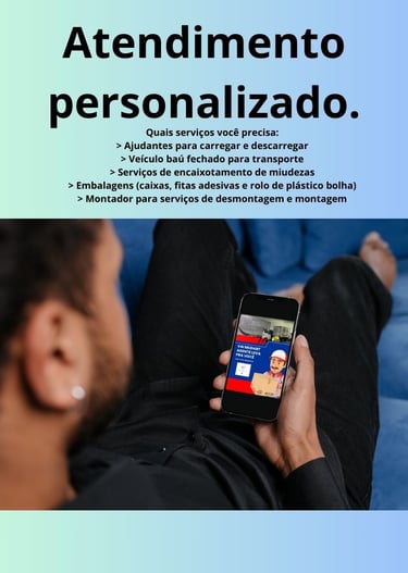 Realizando mudança residencial e comercial; uma empresa comprometida em oferecer a melhor serviço preço justo e qualidade excepcional, somos especializados em tornar o processo da mudança uma experiência tranquila e sem estresse, nossa equipe altamente qualificada e experiente está pronta para atender a necessidade individual de cada cliente planejado e executado mudança de forma eficiente e segura.